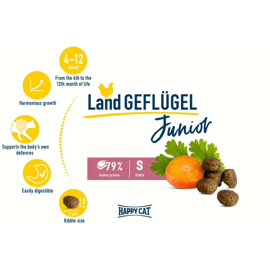 Our premium dry food for kittens is made from well-tolerated poultry, tender carrots and coriander. The small kibbles with balanced nutritional content are ideal for growing kittens in the second half of their lives. Enriched with many important nutrients such as zinc and vitamin C, the dry food promotes the kittens body & own defenses.